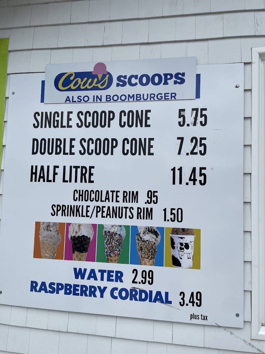 I stopped originally for Cows Ice Cream but decided to get a Boomburger to go as well. Burger was made fresh to order, exactly as I like with toppings I requested. I didn't eat it until about an hour later at my hotel and was still warm and delicious. At Cows I got a Gooey Mooey ice cream cone and as always, Cows has not disappointed me. Staff were friendly and efficient. I would highly recommend this place and if I'm ever in the area again, I will def plan to go!