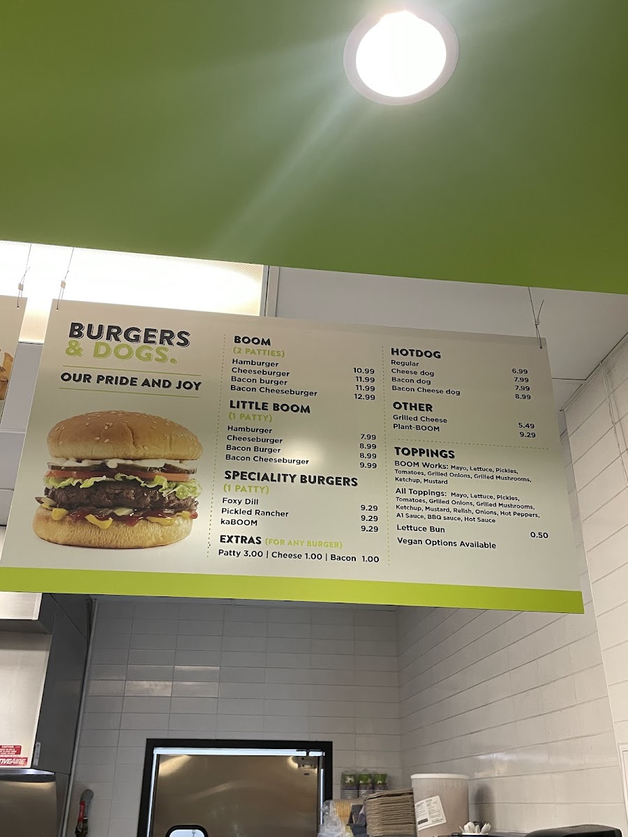 BOOMburger offers a variety of burger options, from the massive Boom burger with two patties, bacon, cheese, and all the fixings, to the Little Boom with one patty for those with a smaller appetite. Their specialty burgers like the Foxy Dill and kaBOOM are a must-try, packed with bold flavors and unique toppings.